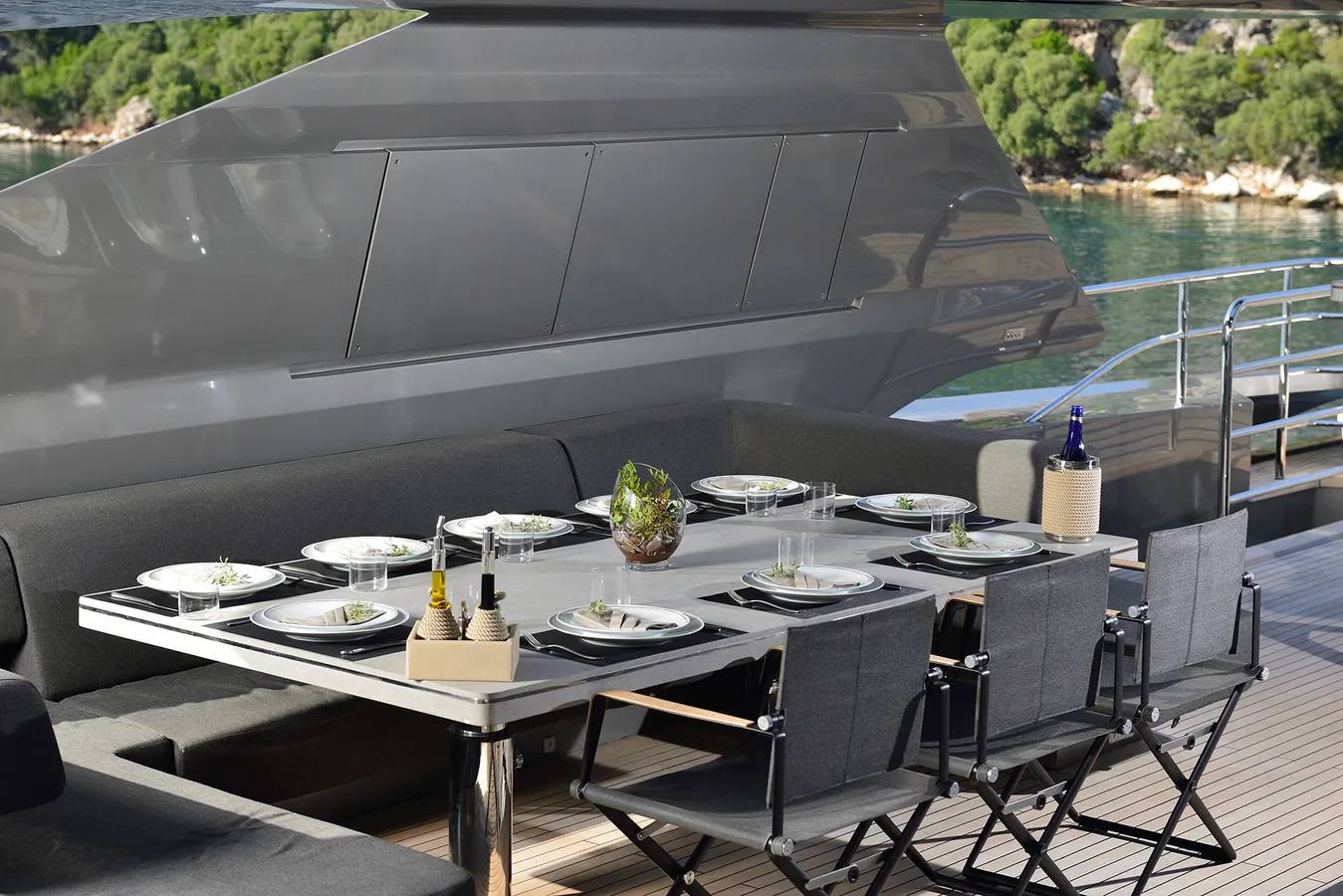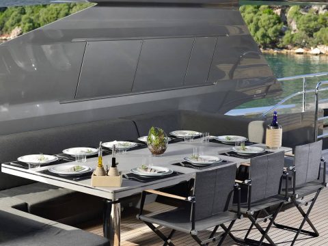 This exquisite motor yacht is available for charter from Royal Phuket Marina, operated by a trusted local charter company.