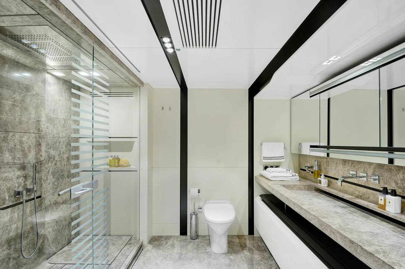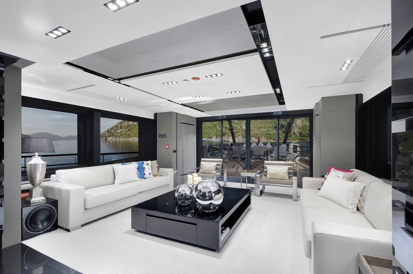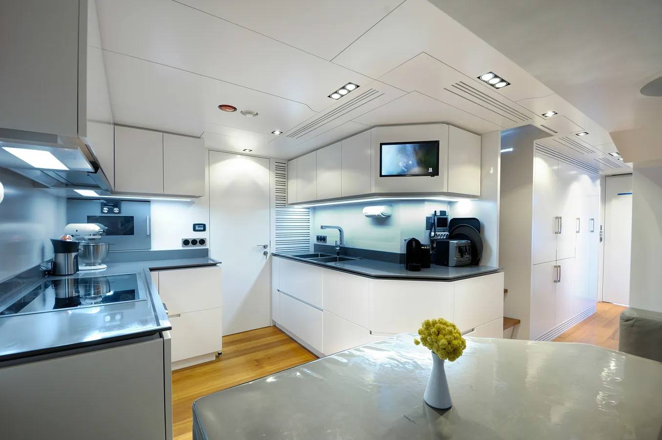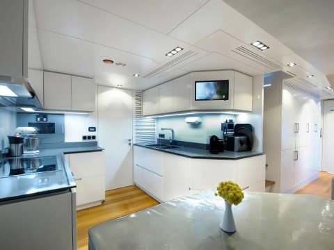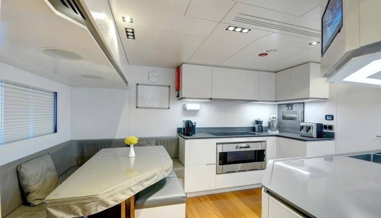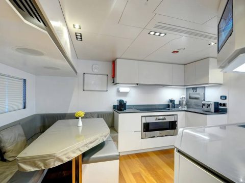 Onboard, you’ll find 5 bathrooms with showers and all the modern comforts — including air conditioning, heating, a flat-screen TV, DVD player, and premium audio system. The fully equipped galley features a microwave, dishwasher, ice maker, freezer, and coffee machine for ultimate convenience.
