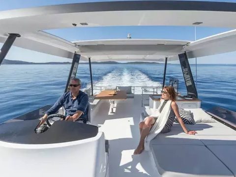 Guests can enjoy 3 bathrooms with showers and a wealth of onboard features, including a generator, salon GPS plotter, bimini, BBQ grill, and bow thruster. The yacht also provides air conditioning, heating, a premium audio system, outside speakers, and a spacious flybridge—perfect for sunset views and social gatherings.