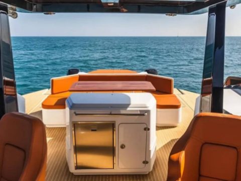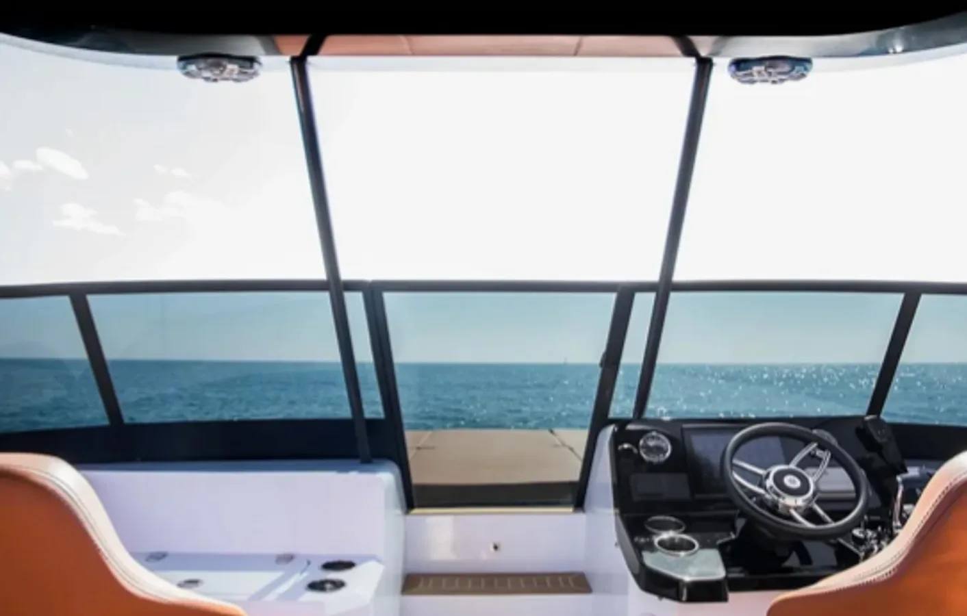 Onboard, guests can enjoy 2 bathrooms with showers, a bimini for shade, and advanced navigation with an outside GPS plotter. The entertainment setup includes an audio system with both inside and outside speakers, creating the perfect atmosphere for relaxation or parties on the water.