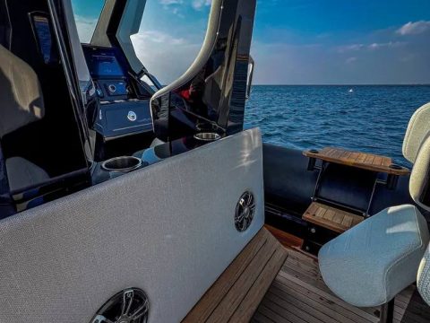 Onboard amenities include a refrigerator to keep your drinks cool and an audio system with outdoor speakers — perfect for setting the right atmosphere as you cruise along Thailand’s breathtaking seascapes.