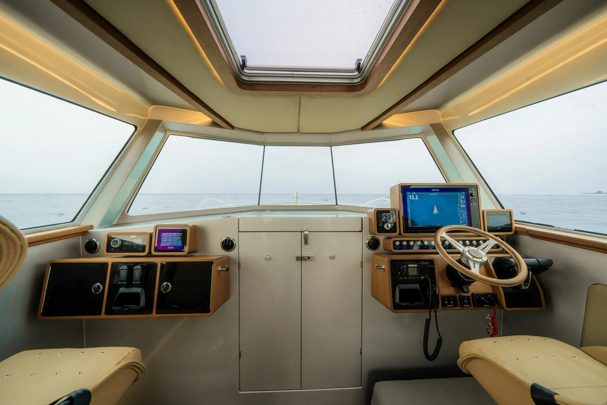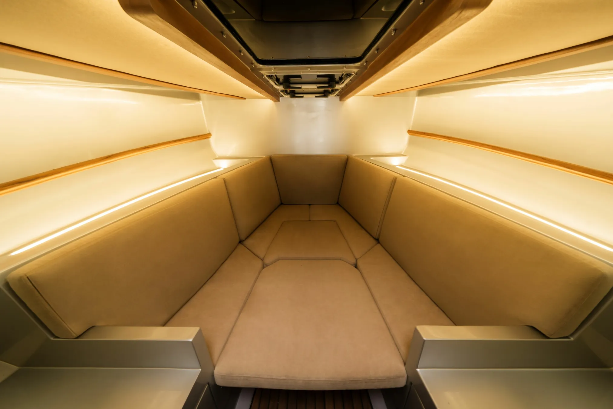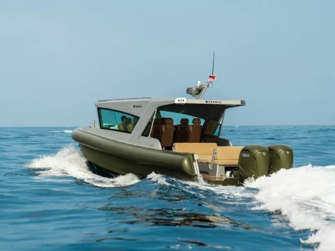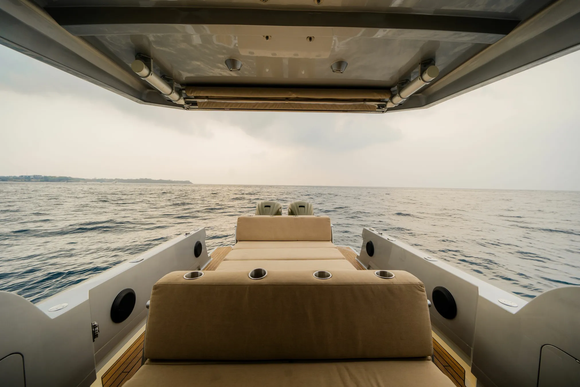 The Vedanta 41 – Wedanta (2024) is a modern motorboat designed for comfort, performance, and social cruising. It accommodates up to 12 guests, making it ideal for day trips, island-hopping, or group adventures along a stunning coastline.