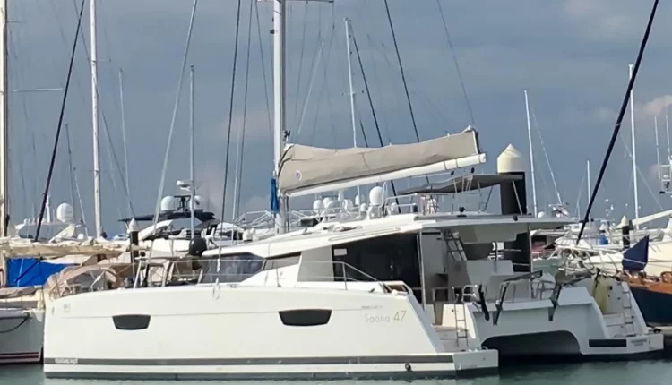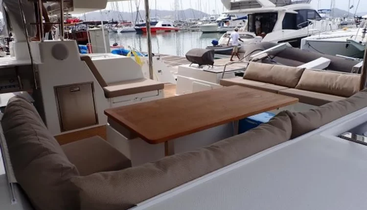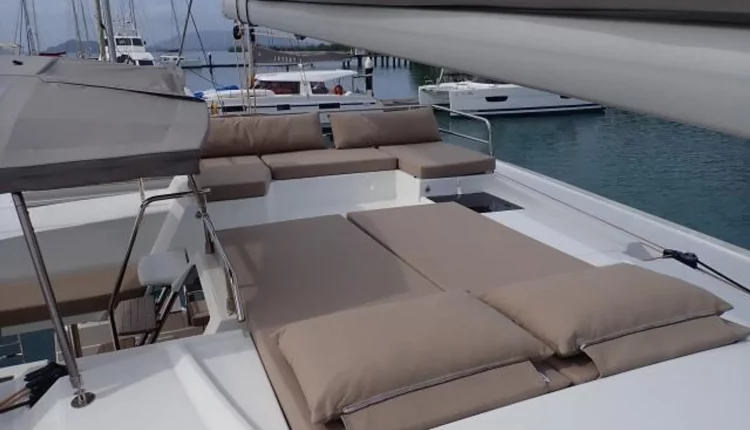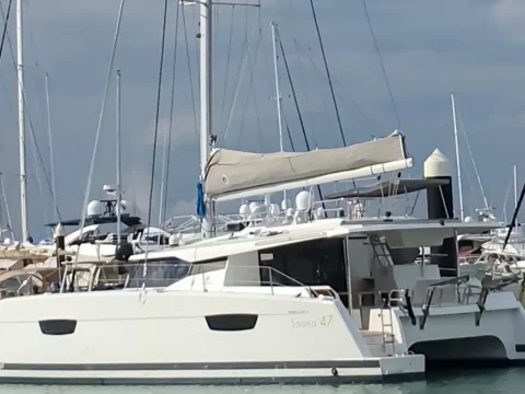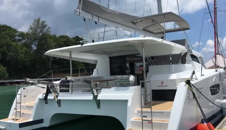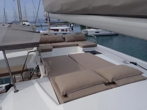 The Fountaine Pajot Saona 47 – Lola 2 is a 5-cabin luxury catamaran launched in 2018, currently moored at Yacht Haven Marina, Thailand.
