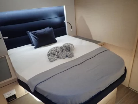 Designed for comfort and space, Lola 2 accommodates up to 12 guests with 4 double cabins, 1 double cabin fitted with a bunk bed, plus a saloon that converts into 2 additional berths. Complimentary pillows and blankets are provided for every guest.