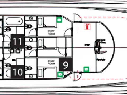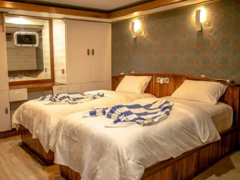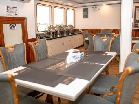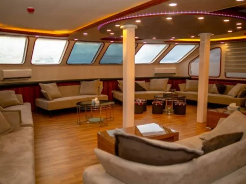 With 11 double cabins, Searose 2 accommodates up to 22 guests overnight. Each cabin is fitted with comfortable bedding, pillows, and blankets, while 11 en-suite bathrooms with showers ensure privacy and convenience.