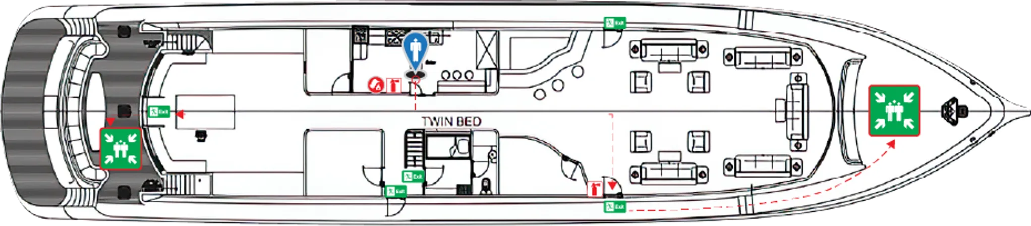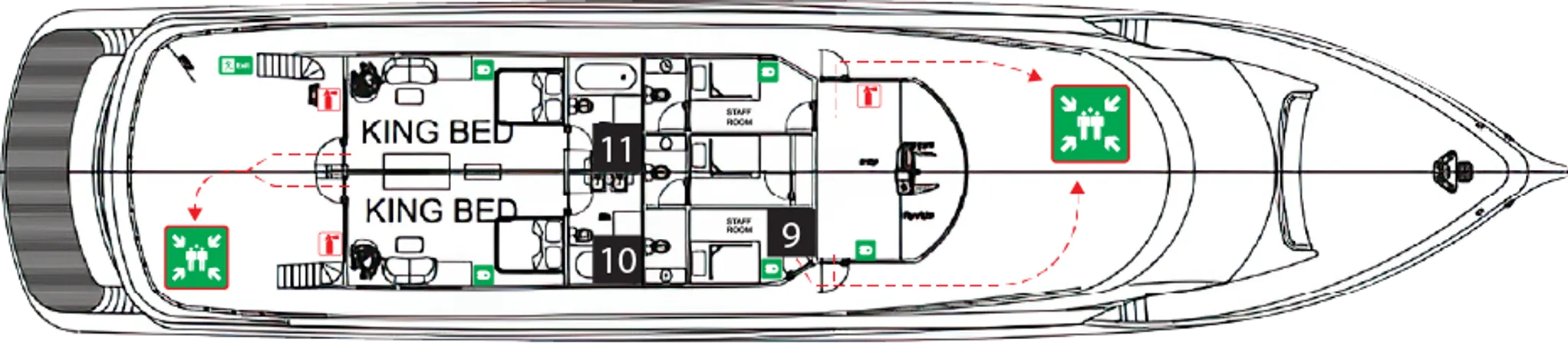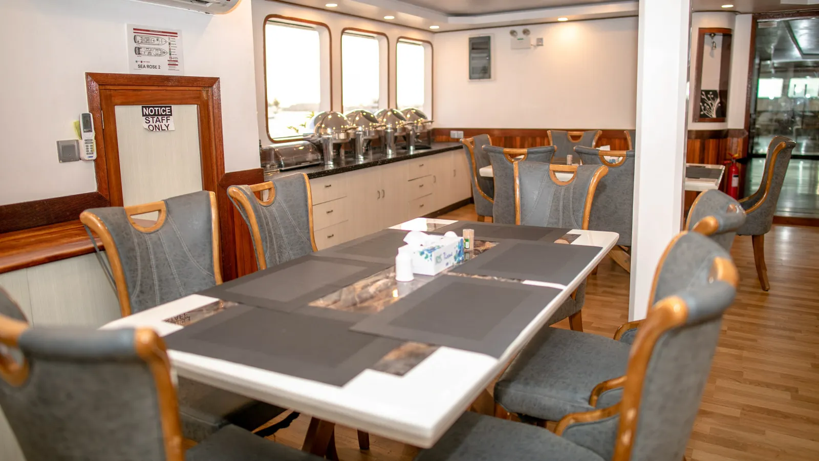 With 11 double cabins, Searose 2 accommodates up to 22 guests overnight. Each cabin is fitted with comfortable bedding, pillows, and blankets, while 11 en-suite bathrooms with showers ensure privacy and convenience.