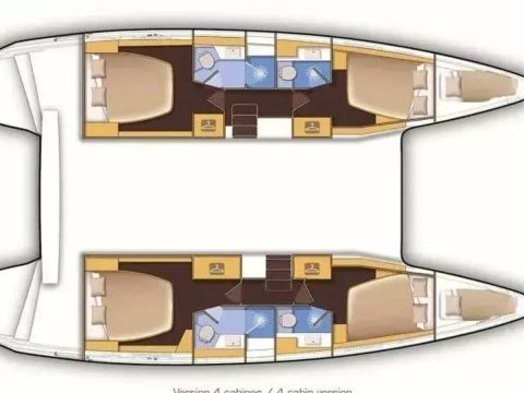 Onboard, you’ll find 4 bathrooms with showers, air conditioning throughout, and an advanced entertainment system with indoor and outdoor speakers. The yacht comes fully equipped with a classic mainsail, generator, bimini top, and external GPS plotter for smooth navigation.