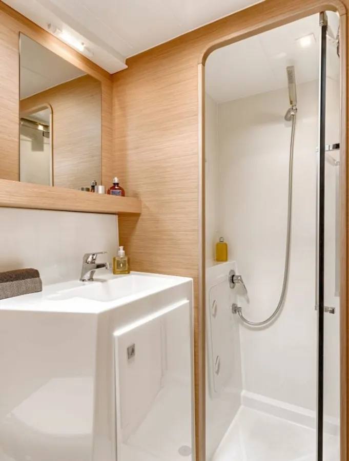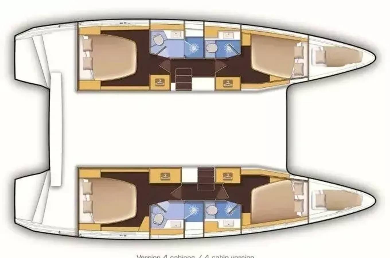 Onboard, you’ll find 4 bathrooms with showers, air conditioning throughout, and an advanced entertainment system with indoor and outdoor speakers. The yacht comes fully equipped with a classic mainsail, generator, bimini top, and external GPS plotter for smooth navigation.
